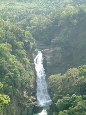 The three-tiered waterfall cascades down 55 meters into the Yunei Stream, a tributary of the Daxi River in northern Taiwan.
