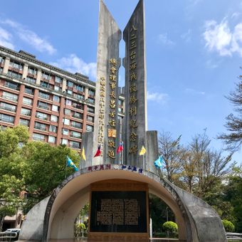 The Memorial Stele stands within the 823 Memorial Park, marking Taiwan's Second Strait Crisis through a stone monument surrounded by green spaces.