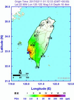 2017年台南地震, Seismic event site in Tainan, Taiwan