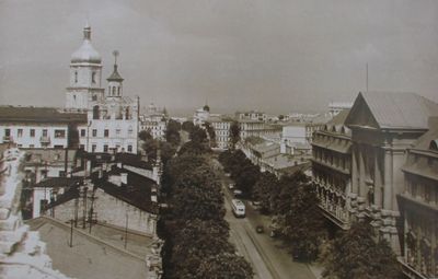 The building represents the architectural style of early Soviet residential developments in Kyiv, reflecting the period's approach to military personnel accommodation.