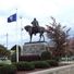 The monument portrays a military figure from the region's past, dressed in period uniform astride a horse with hooves planted firmly on the ground. Visitors passing through downtown often pause here to consider the role this leader held in the area's history.