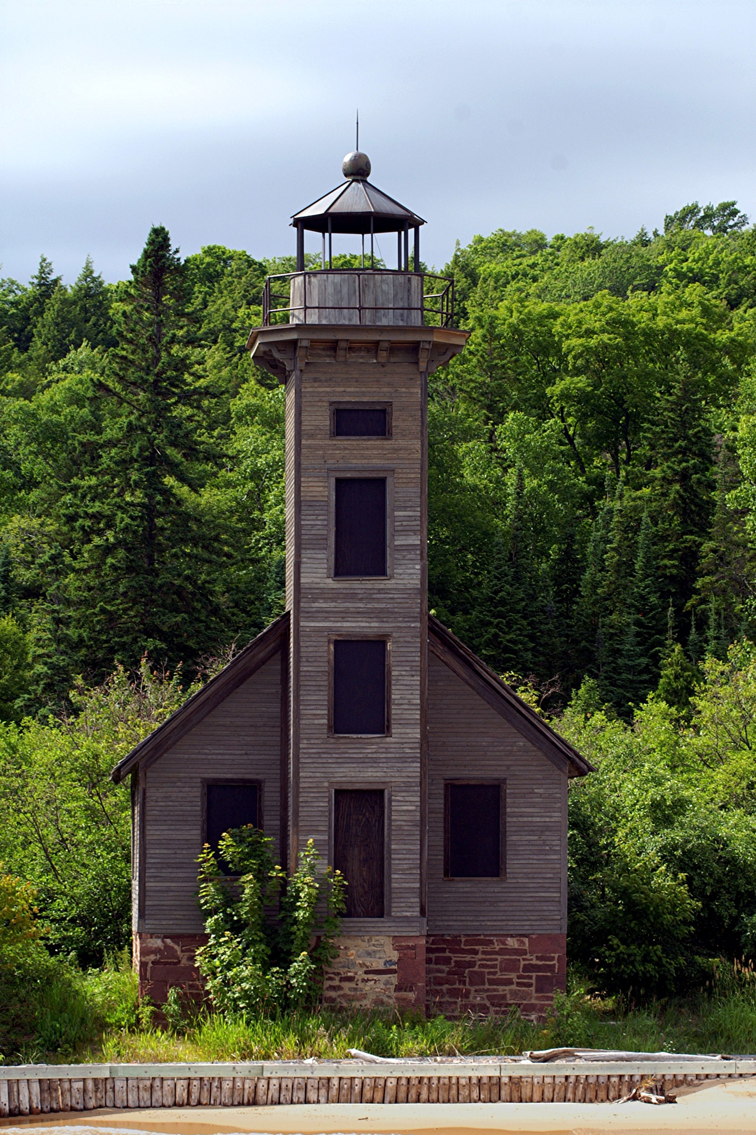 Grand Island East Channel Light, Wooden lighthouse in Munising, Michigan, US.