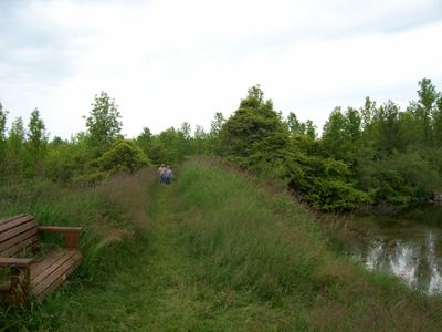The park contains a 26-acre lake formed from a former stone quarry, now surrounded by white cedar swamp and offering distinct fishing opportunities.