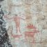 The paintings contain three distinct canoe images with paddlers, plus a figure of a person with extended arms next to what appears to be a dog or wolf.