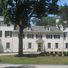 The Federal-style mansion features a central structure with two wings, symmetrical windows, and classical details throughout its three-story elevation.