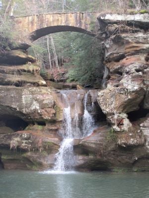 Hocking Hills State Park is a protected natural area in Hocking County, Ohio, featuring deep gorges, sandstone cliffs, and several waterfalls accessible through a network of trails. The grounds include seven main sections with caves, rock bridges, and wooded valleys connected by more than 25 miles of paths.