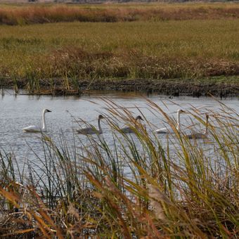 Five main dikes with water control structures manage 23,000 acres of wetlands, supporting 250 bird species throughout their migration cycles.