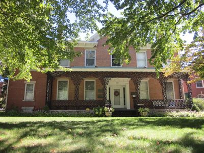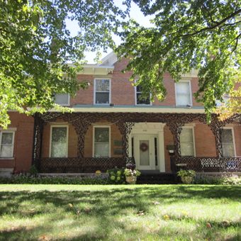 The two-story brick residence features local walnut timber, limestone from Kickapoo Valley, and materials transported from Chicago for its construction.
