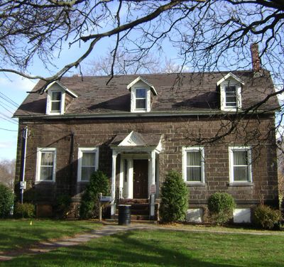 The John W. Rea House stands on a 3-acre property at 675 Goffle Road, featuring architectural elements from the early American colonial period.