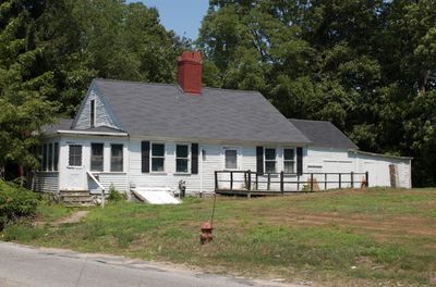 The Jerathmell Bowers House is a one-and-a-half-story colonial structure with a gabled roof, central brick chimney, and wood clapboard siding. The building sits in western Lowell and displays the characteristic features of American colonial architecture from the late 1600s.