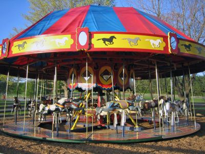 A vintage carousel stands near the lake, offering children a taste of old-fashioned entertainment that has delighted visitors for many years. This traditional ride is an unusual feature in a modern park and brings together people seeking nostalgic fun.
