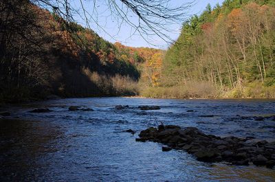 The 4,548-acre park extends along the Lehigh River, featuring deep gorges, waterfalls, and forested areas between White Haven and Jim Thorpe.