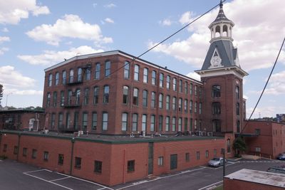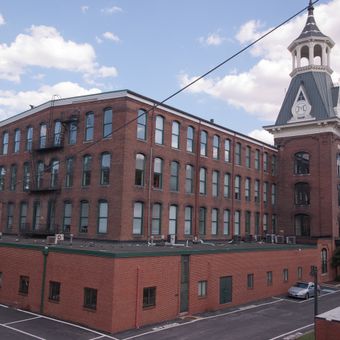 The complex represents early American industrial architecture, situated between Woodberry and Hampden neighborhoods with original millworkers' houses nearby.