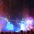 The performance combines pyrotechnics, fireworks, lasers, acrobatics, dance routines, and light displays across a three-story stage along the Iron Dragon midway.