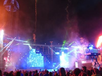 Twenty-five dancers, three drummers, two cirque performers, and two DJs present contemporary and classic music performances synchronized with light effects.