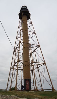 The original brick lighthouse from 1835 was replaced in 1895 with an eight-legged iron structure, featuring a sixth-order Fresnel lens and whale oil lamps.