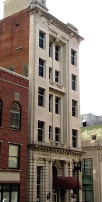 The Mechanics' Bank and Trust Company Building features a facade constructed with Tennessee marble and stands six stories tall on South Gay Street.