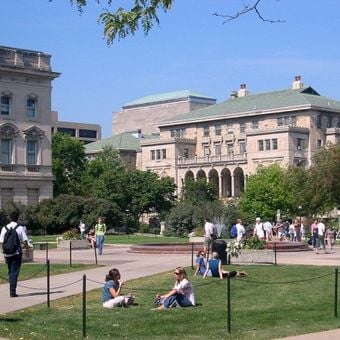 Memorial Union is a limestone building with Renaissance Revival elements that houses multiple dining areas, study spaces, and meeting rooms while overlooking Lake Mendota. The structure combines historic architecture with modern additions and has served as a central hub of the campus for nearly a century.