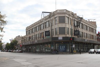 The buildings feature detailed glazed terra cotta facades that housed major retail chains like Goldblatt's, F.W. Woolworth, and S.S. Kresge.