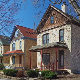Milwaukee Avenue Historic District is a residential area containing 78 Victorian brick houses built with matching designs on small quarter-lot parcels. Each house features wooden porches and ornamental details that show how residents lived during the late 1800s.