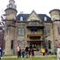 Oaklawn Farm spans 56 acres and features several historic structures, including a prominent castle with an octagonal tower and steeply tiled roof.