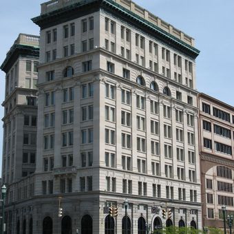 The bank building represents a prime example of financial architecture from 1897, now included in the Hanover Square Historic District of Syracuse.