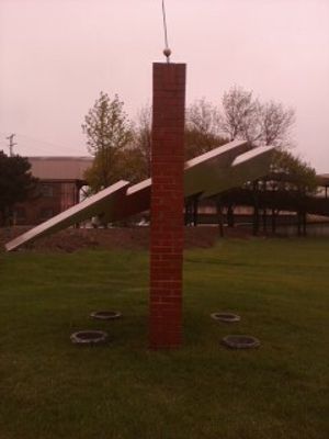 The sculpture reflects the industrial changes in Menomonee Valley, where manufacturing facilities and meat packing plants once defined the neighborhood's character.