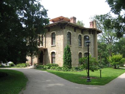 Local limestone quarries provided the construction materials for this residence, designed by architect Otis L. Wheelock from the Chicago firm Boyington and Wheelock.