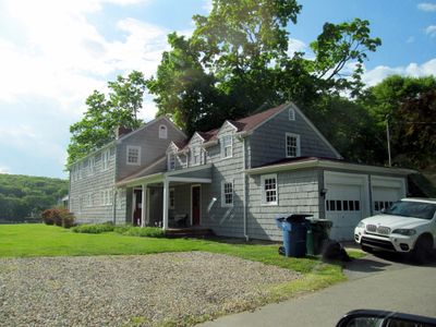 The Oswegatchie Historic District extends along the eastern bank of the Niantic River, forming a U-shaped configuration that encloses Keeny Cove.