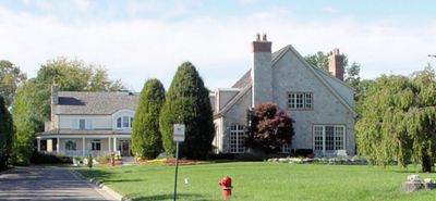 The property featured a U-shaped layout with a porte-cochere entrance and was accessed through a private drive from Lakeshore Road.