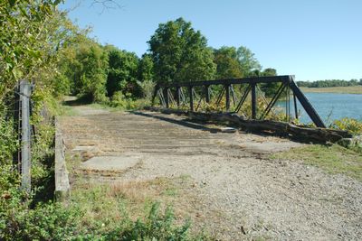 The bridge sits north of Old Dam Road and is easily accessed by foot or bicycle within the park grounds. The area is flat and straightforward to navigate, making it suitable for a relaxed visit with others.
