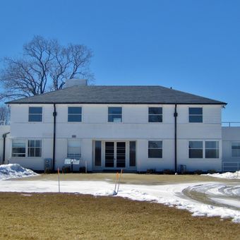 The Adlai E. Stevenson II Farm contains multiple buildings designed in International Style and Moderne architecture across 40 acres of preserved land.