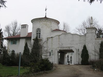 The property features a dedicated chapel within its grounds, showcasing the intersection of residential and religious architecture in early 20th-century American mansion design.