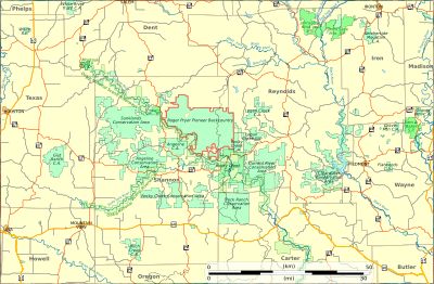 Roger Pryor Pioneer Backcountry, Protected wilderness area in Shannon County, Missouri.