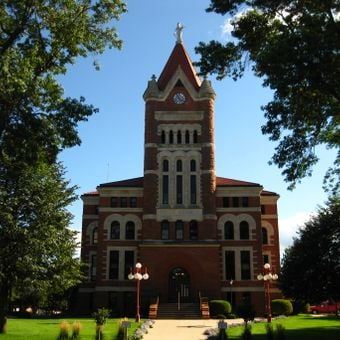 Sioux County Courthouse, Richardsonian Romanesque courthouse in Orange City, Iowa.
