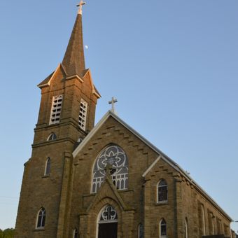 The original Catholic congregation formed in 1868 with a small frame building, while the current stone church construction completed in 1894 under architect Adolphus Druiding.