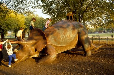 Uncle Beazley, Fiberglass dinosaur statue at National Zoological Park, United States.