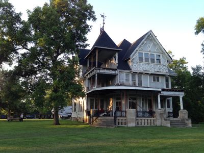 The Wardell House features Queen Anne architectural elements with detailed woodwork, multiple gables, and ornamental patterns throughout its exterior design.