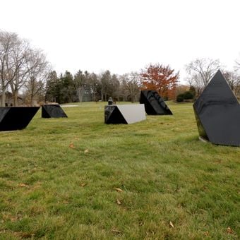 The five elements function both as individual sculptures and as components of a larger work, with no predetermined spatial relationship between them.