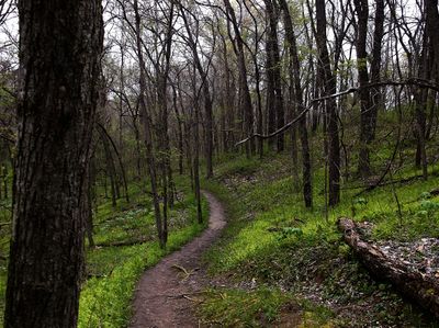 The park extends across 1,133 acres of natural terrain with hiking trails, bike paths, and observation points overlooking the Missouri River.