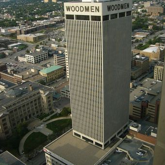 The WoodmenLife Tower is a 30-story office building located at 1700 Farnam Street in downtown Omaha with a distinctive dual-roof design. The structure rises approximately 478 feet (146 meters) and combines concrete and steel in its construction.