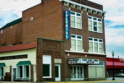The Colonial Theatre, constructed in 1925 for $10,000 by Gilbert A. Saunders, started as a vaudeville venue before converting into a motion picture theater.