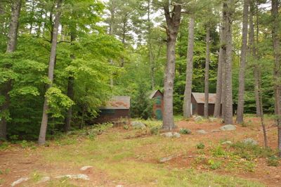 The Abenaki Indian Shop and Camp encompasses 3.8 acres of mixed hardwood forest with small shingled cabins arranged around a clearing.