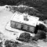 The white stone lighthouse rises above the southern coast of Vieques Island, featuring a cylindrical tower and elevated keeper's quarters.