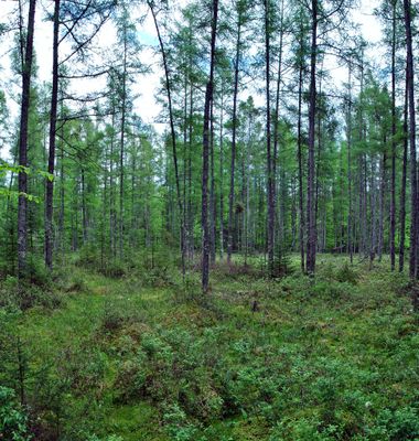 The understory contains Labrador tea, bog laurel, leatherleaf, wooly-fruit sedge, twinflower, cinnamon fern, sundews, and pink ladyslipper populations.
