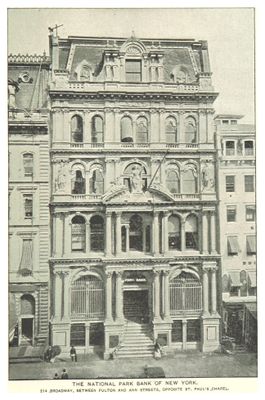 National Park Bank, Historic bank building at Broadway, New York City, United States