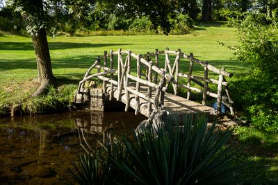 The 42-acre estate features seventeen concrete bridges designed to imitate wood textures, along with cement trees, pools, and large decorative birdhouses.