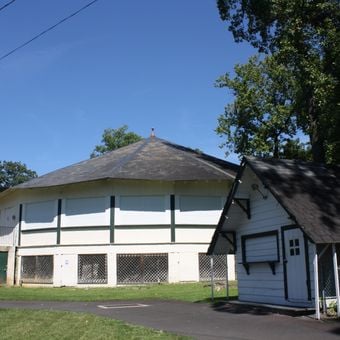 Each of the pavilion's 24 sections spans precisely 10 feet 6 inches, creating a symmetrical structure that houses this National Register listed carousel.