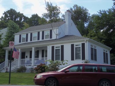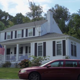 The 446 buildings within this 102-acre residential neighborhood feature uniform Colonial Revival architecture with two-story structures and traditional design elements.