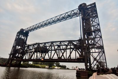 Cuyahoga River Bridge 1 is a vertical lift bridge carrying two railroad tracks across the river using a steel through truss structure designed for freight movement. It sits at the furthest point downstream before the river meets Lake Erie.